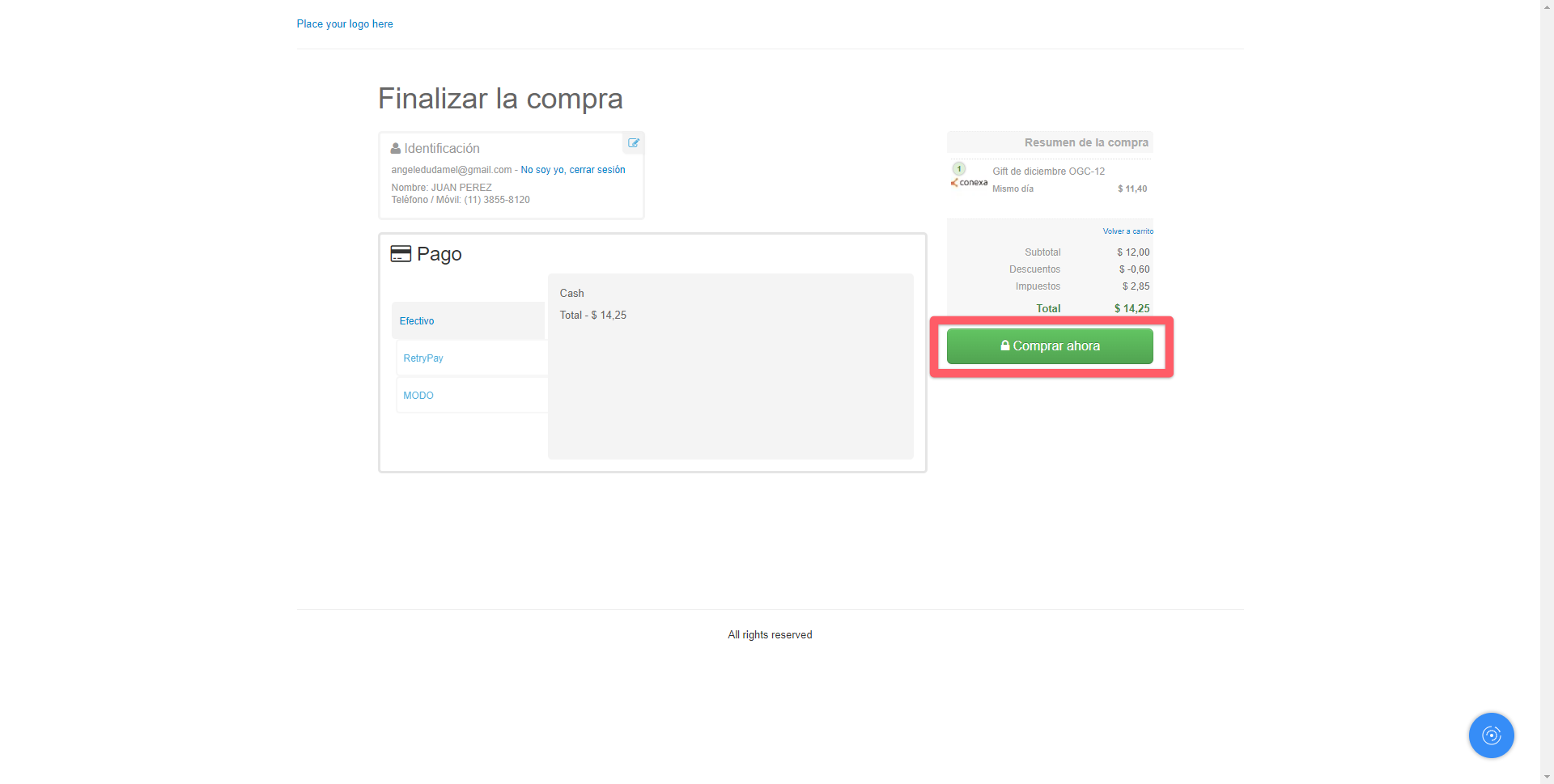 Por último seleccionará el medio de pago y presionará el botón Comprar ahora.
